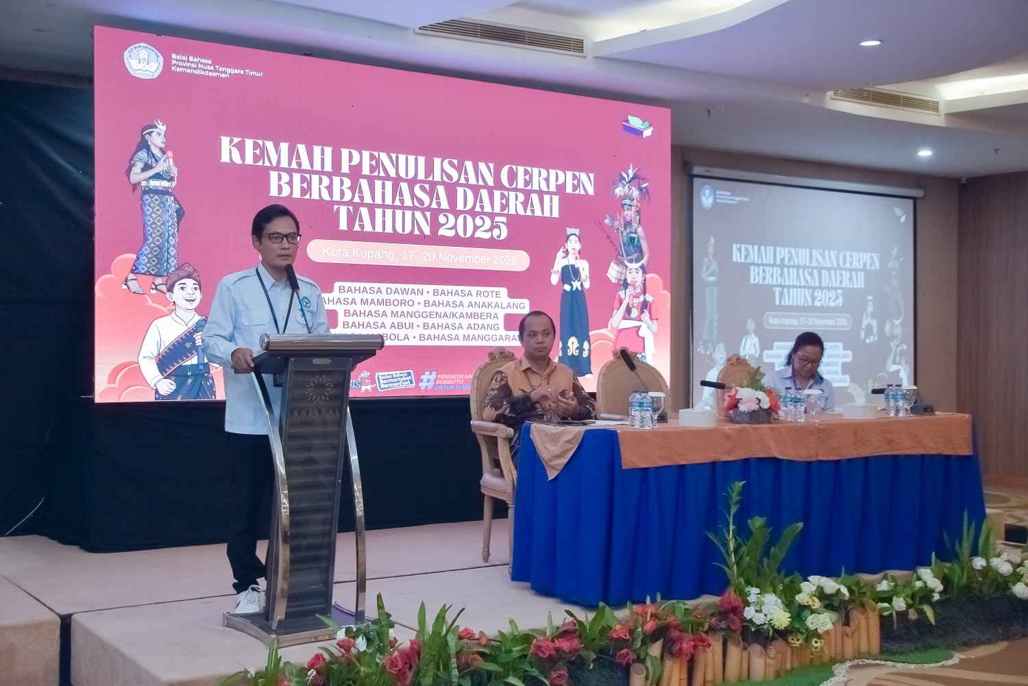 Kepala Balai Bahasa NTT, R. Hery Budhiono saat membuka Kemah Penulisan Cerpen Berbahasa Daerah pada 17 November 2025 di Hotel Kristal Kupang.