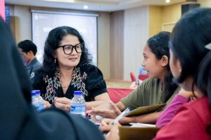 Peserta saat didampingi oleh Mezra E. Pellondou, salah satu narasumber kegiatan.
